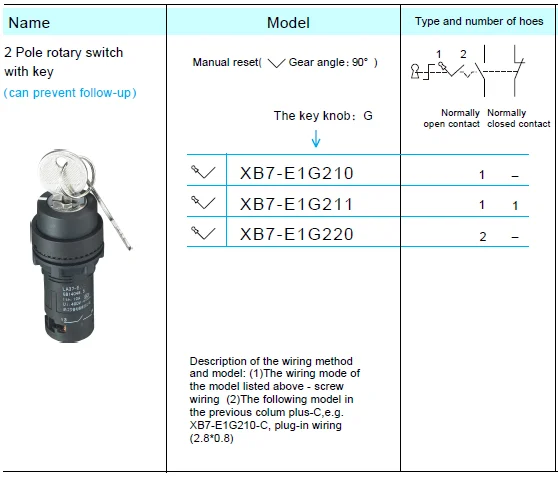 El interruptor giratorio de 2 polos con llave evita el seguimiento del interruptor de botón de 22 mm