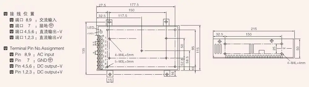 | 1. Todos los parámetros NO mencionados especialmente se miden a una entrada de 230 VCA, carga nominal y 25 ° C de temperatura ambiente. 2. La ondulación y el ruido se miden a 20MHz de ancho de banda utilizando un cable de par trenzado de 12 \"terminado con un condensador paralelo de 0.1uf y 47uf. 3. Tolerancia: incluye tolerancia de configuración, regulación de línea y regulación de carga. 4. La regulación de la línea se mide desde la línea baja a la línea alta a la carga nominal. 5. La regulación de carga se mide de 0% a 100% de carga nominal. 6. La fuente de alimentación se considera un componente que se instalará en un equipo final. El equipo final debe volver a confirmarse que aún cumple con EMC | ||||||